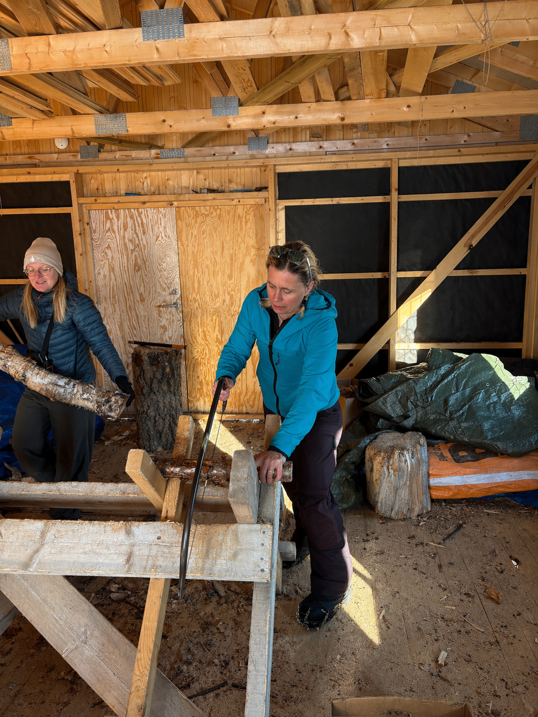 Each evening, we arrive at a hut and fall into routine: collecting water, chopping wood, preparing food. The hut wardens greet each arrival with the same quiet consistency, managing a steady flow of skiers passing through.