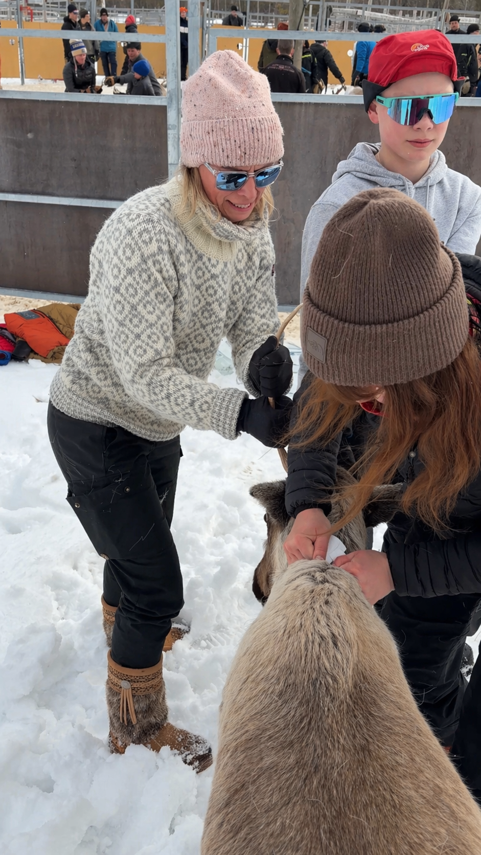 Out in the forest, thousands move together through the trees, the sound of hooves soft against the ground before they are guided into the pen. Inside, the pace shifts. Herders step forward to identify their own - not by number, but by ear markings and instinct - catching them by antler or flank and releasing them into separate enclosures. Children work alongside adults, learning as they go. Decisions are collective, shaped by experience and by the condition of the herd.